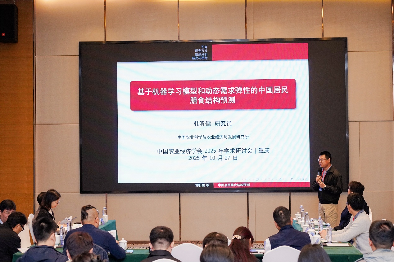 2025年10月27日,中国农业经济学会2025年学术研讨会青年学者专场暨中国青年农业经济学家论坛在重庆隆重召开。本次中国青年农业经济学家论坛由中国农业经济学会青年(工作)委员会主办。中国农业大学经济管理学院院长司伟,华中农业大学经济管理学院院长李谷成、李剑教授,北京林业大学国家林草经贸研究院院长程宝栋,上海财经大学城乡发展研究院副院长许庆,中国人民大学农业与农村发展学院副院长陈威、唐建军教授等60余位专家学者出席会议。中国人民大学农业与农村发展学院院长吕捷主持本次论坛。