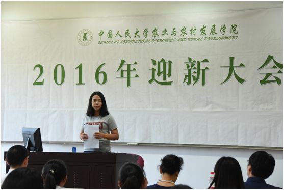 2016年9月10日上午9时,农业与农村发展学院2016年迎新大会在国学馆226教室隆重举行。学院全体院领导、校友代表、在校生代表、学院部分行政老师以及2016级本、硕、博班主任和全体新生出席了大会。会议由学院党委书记张利庠教授主持。