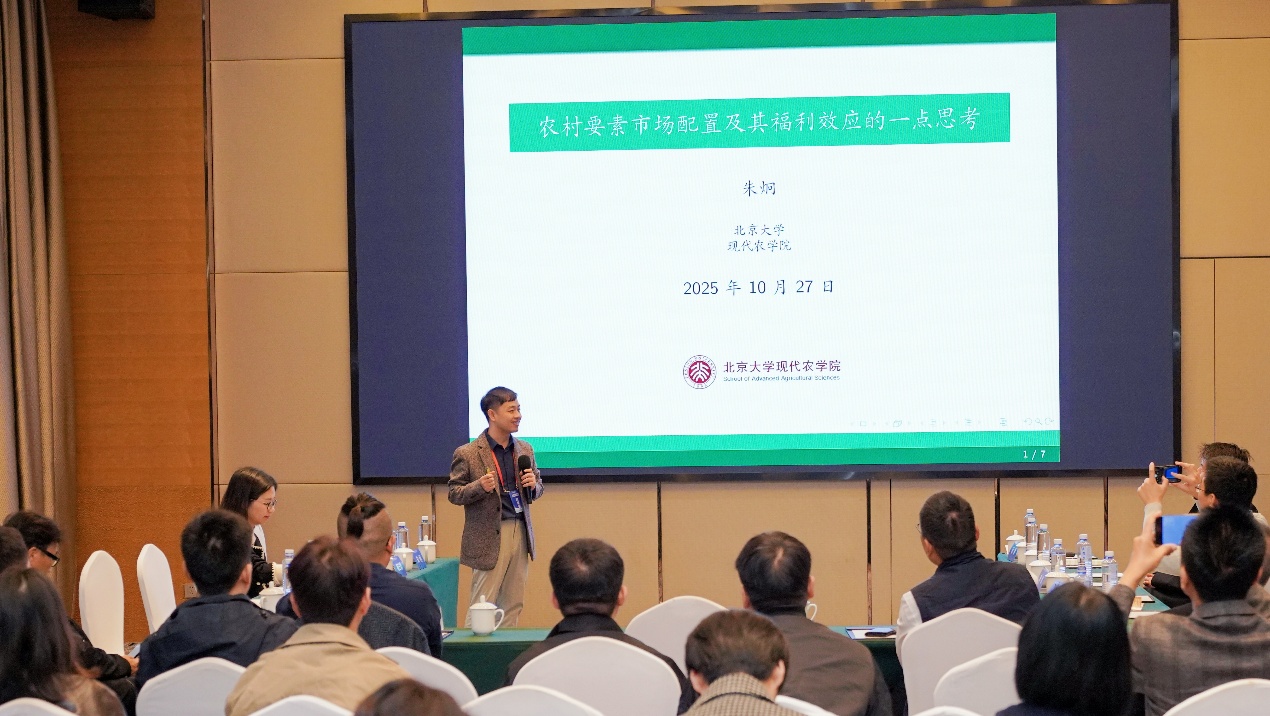 在年度主旨报告环节,中国人民大学农业与农村发展学院副教授杨三思作题为“数字技术助推传统经验阻滞:智慧农业对农户灌溉行为的影响机制”的报告;北京大学现代农学院副教授朱炯作题为“农村要素市场配置及其福利效应的一点思考”的报告。两位青年学者的研究从数字技术赋能农业生产、农村要素市场改革等角度,探讨了“十五五”时期中国特色农业现代化发展的未来方向。