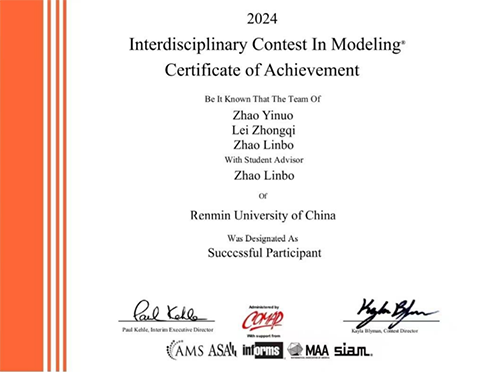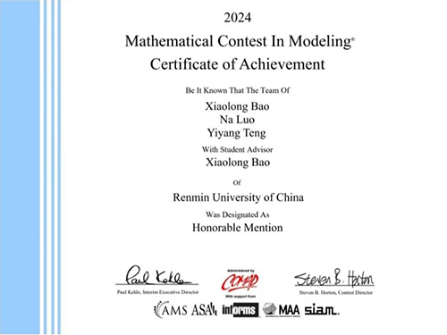 2024年美国大学生数学建模竞赛(MCM/ICM)我院学生获奖证书
