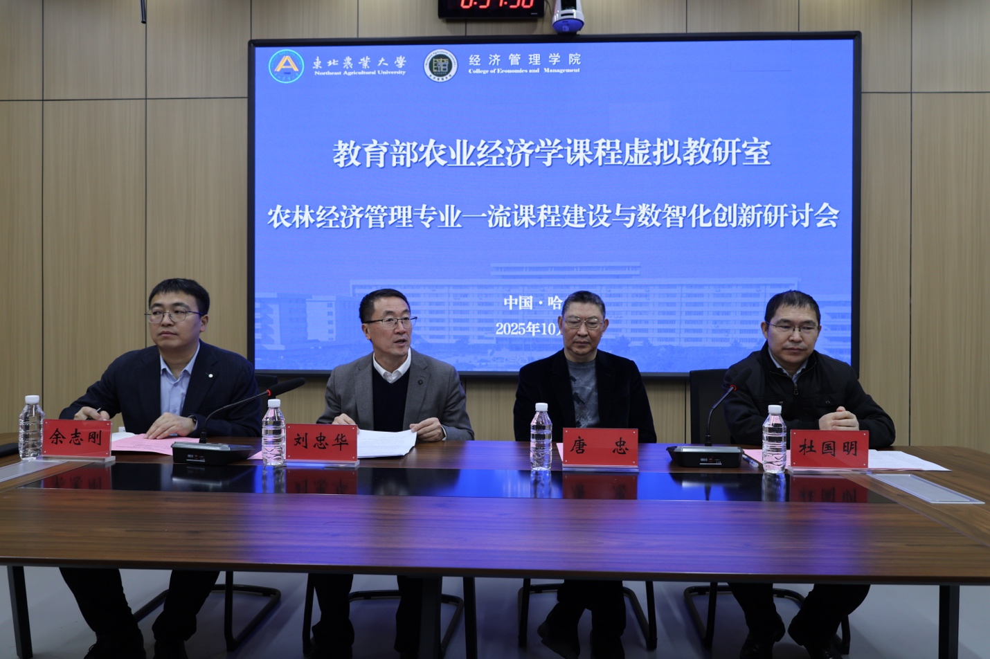 2025-10-23为进一步加强农业经济学课程虚拟教研室建设工作,推动各单位一流课程建设与数智化创新,共同提高农业经济管理类专业本科教学水平,农业经济学课程虚拟教研室和东北农业大学经济管理学院于2025年10月19日,在黑龙江省哈尔滨市召开了农林经济管理专业一流课程建设与数智化创新研讨会,会议由东北农业大学经济管理学院承办。